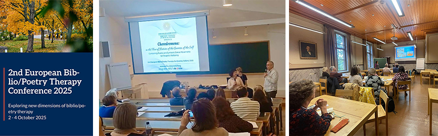 Στη Φιλανδία ταξιδέψαμε την πρώτη εβδομάδα του Οκτωβρίου 2025, όπου συμμετείχαμε στο 2ο Ευρωπαϊκό συνέδριο Biblio /Poetry Therapy για δύο παρουσιάσεις, η μία πάνω στα Χοροδρώμενα και η άλλη πάνω στη μέθοδο εμβάθυνσης στην ποίηση και τη λογοτεχνία με την οποία εργαζόμαστε στον Όμιλο Εξυπηρετητών.